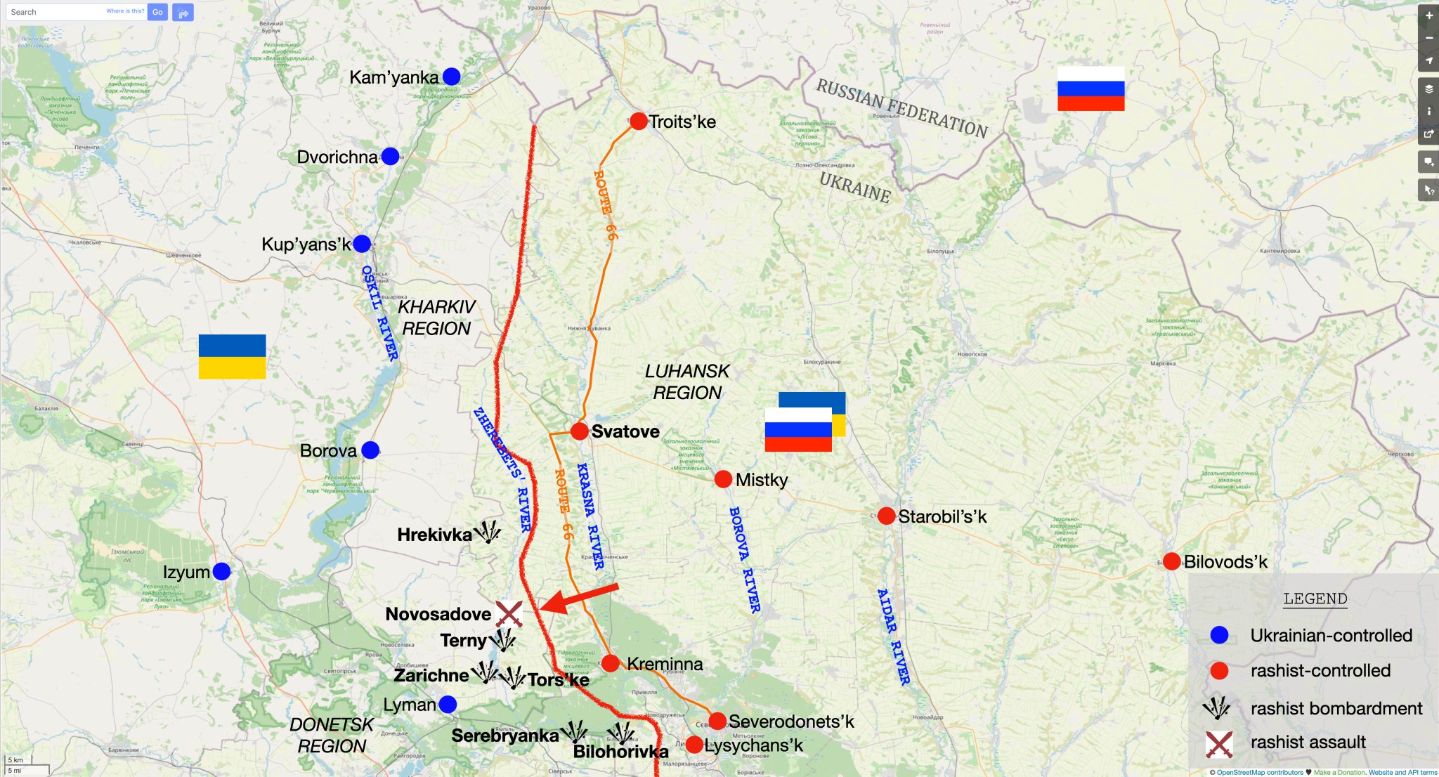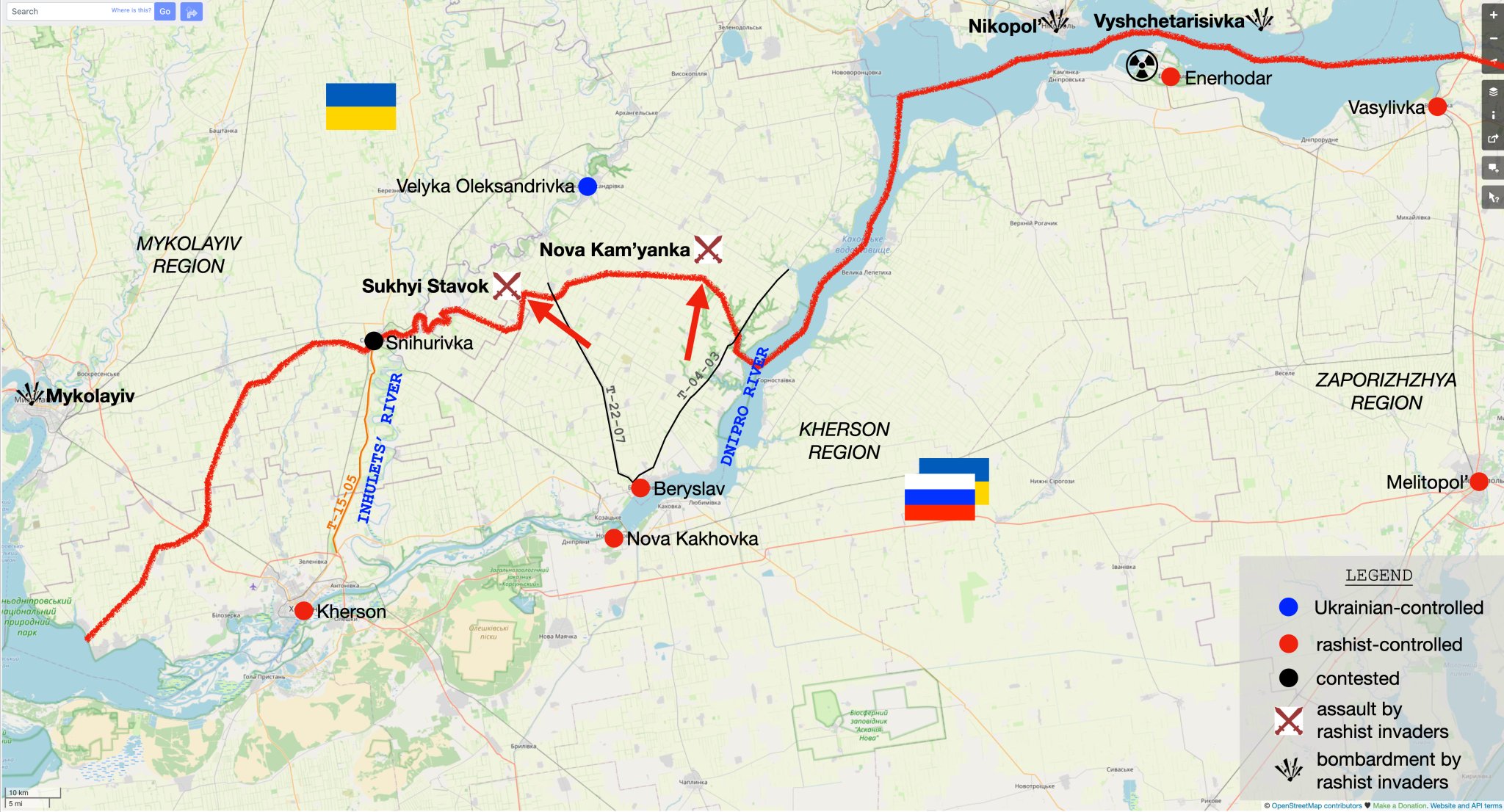 新‧二七部隊 軍事雜談 (New 27 Br... on Twitter10/14. 烏克蘭參謀總部報告,在刻松地區的別斯拉夫區,烏軍擊退俄軍企圖向蘇赫伊斯塔沃克(Sukhyi Stavok)和新卡姆揚卡(Nova Kam'yanka)方向的進攻