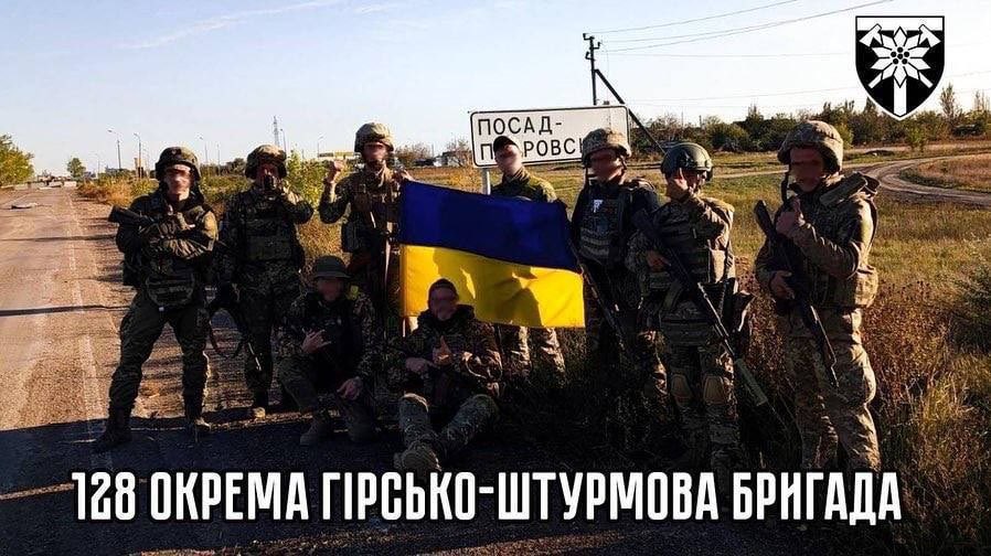 新‧二七部隊 軍事雜談 (New 27 Br... on Twitter10/14. 烏軍第128山地突擊旅於刻松地區重新收復「波索德-波克羅夫西克」(Посад-Покровське),這個城鎮曾經被俄軍一度攻佔,之後再度被烏軍奪回,距離刻松市約24公里