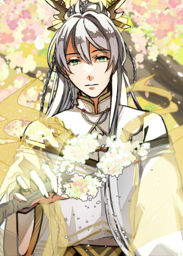 充滿花的背景也好好看、好適合角色