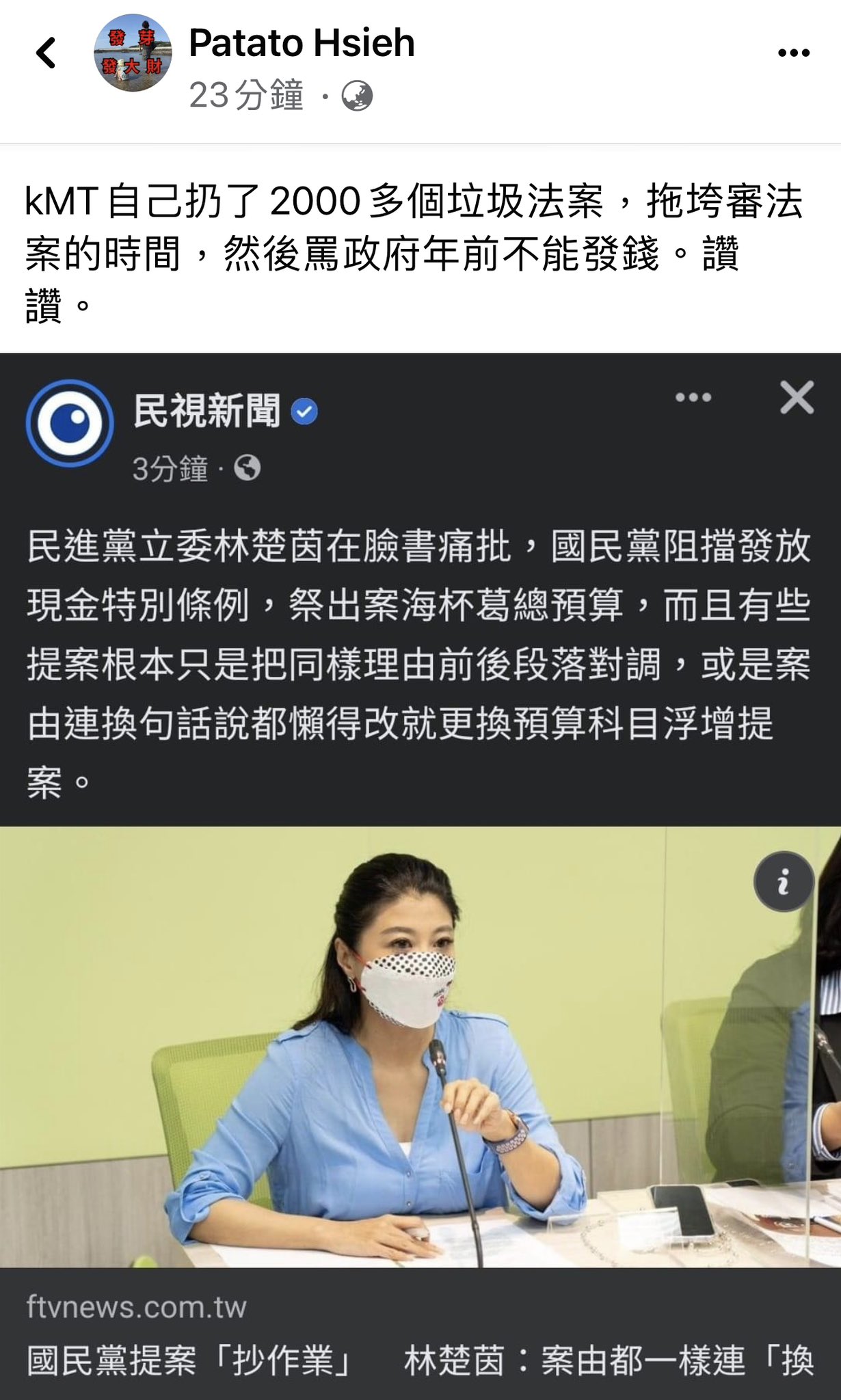 這種我都順著說:欸唷你看他貪那麼多,選前發一發選民就會投給他啦。