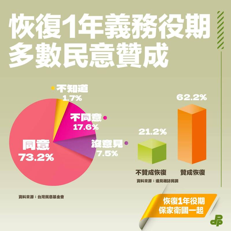 兵役恢復1年》義務役期恢復1年 懶人包看這邊 - 政治 - 自由時報電子報民進黨政府為此次台灣軍事改革準備懶人包圖卡!方便社會大眾了解。民進黨強調改革需踏出第一步,讓方案更好、戰力更強,讓義務役一年更有意義。蔡英文總統也向國人喊話,備戰才能避戰,能戰才能止戰,台灣必須強化自我防衛能力