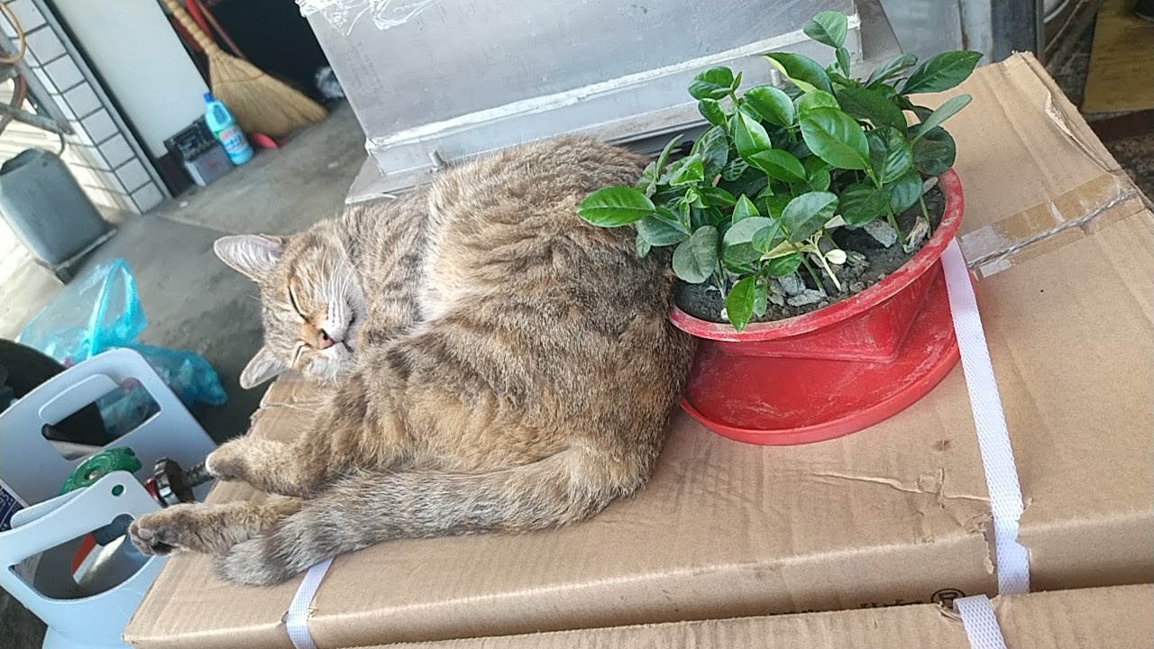 烤鴨店外面的貓,睡得毫無反應