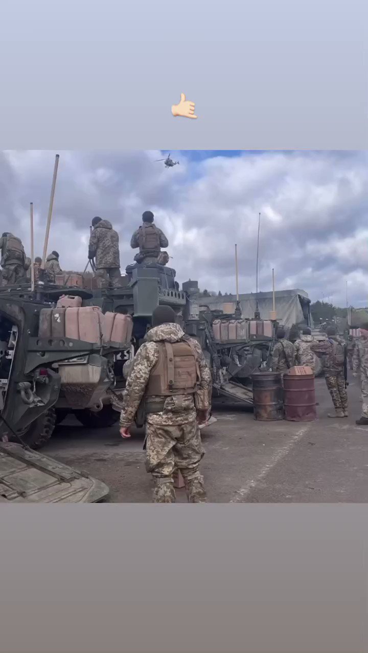 新‧二七部隊 軍事雜談 (New 27 Brigade)🇹🇼🇺🇦 on Twitter23/3/30. 整排的史崔克裝甲車在烏克蘭,還有其他的西方援助車輛,他們帶著充足的油料和彈藥,準備進行反攻作戰
