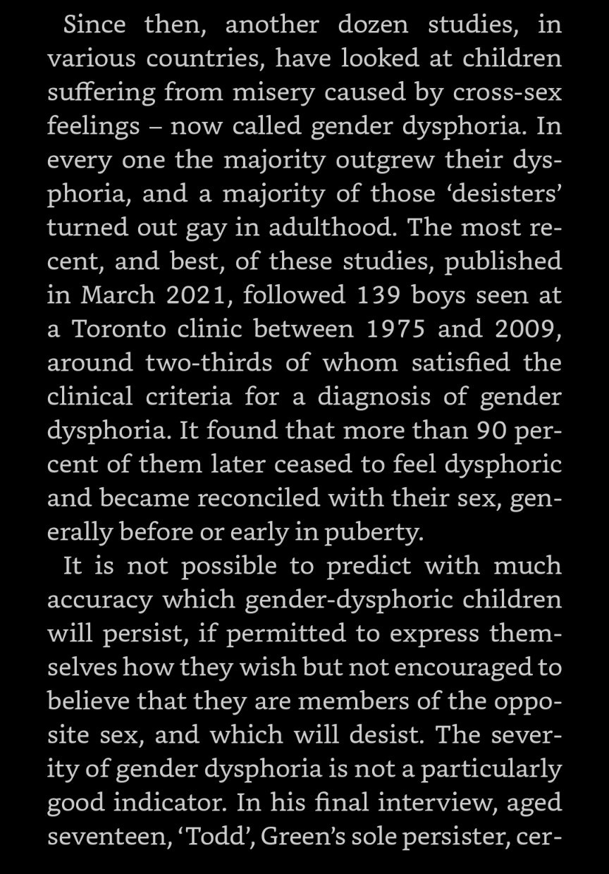 「"跨性別兒童" 是一些性格暴躁、情緒失調的兒童,他們被捲入了一個更大的模因過程,成為社會運動和各種商業產業(文化、政治、醫療)的棋子和吉祥物。