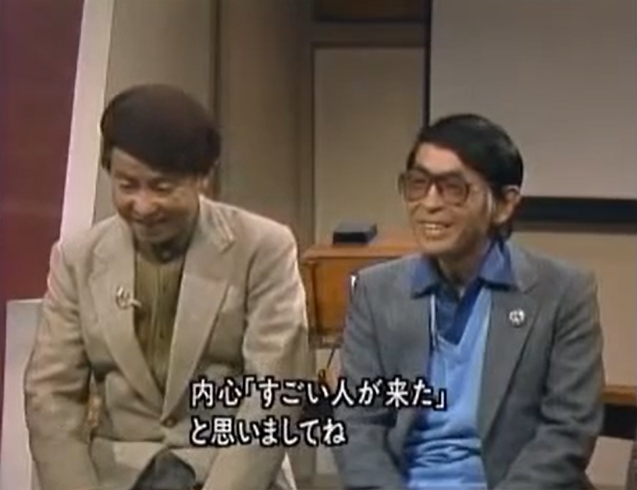 手塚先生のサプライズ登場に恐縮する藤子不二雄の2人