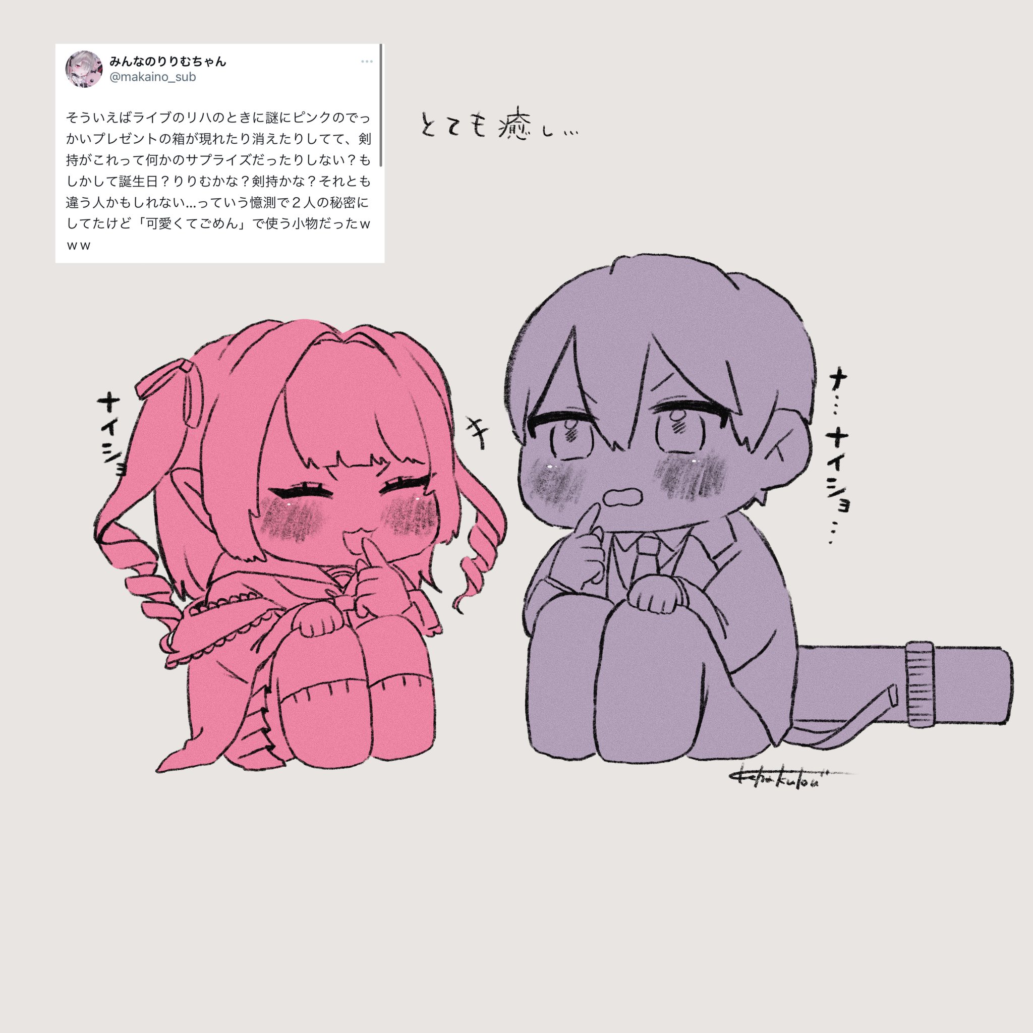 和剣持一起在想,這個會不會是拿來做驚喜用的?還是誰的生日?給りりむ的嗎?給剣持的嗎?還是要給其他人的...做了這樣的揣測之後,就兩個人一起保密這件事