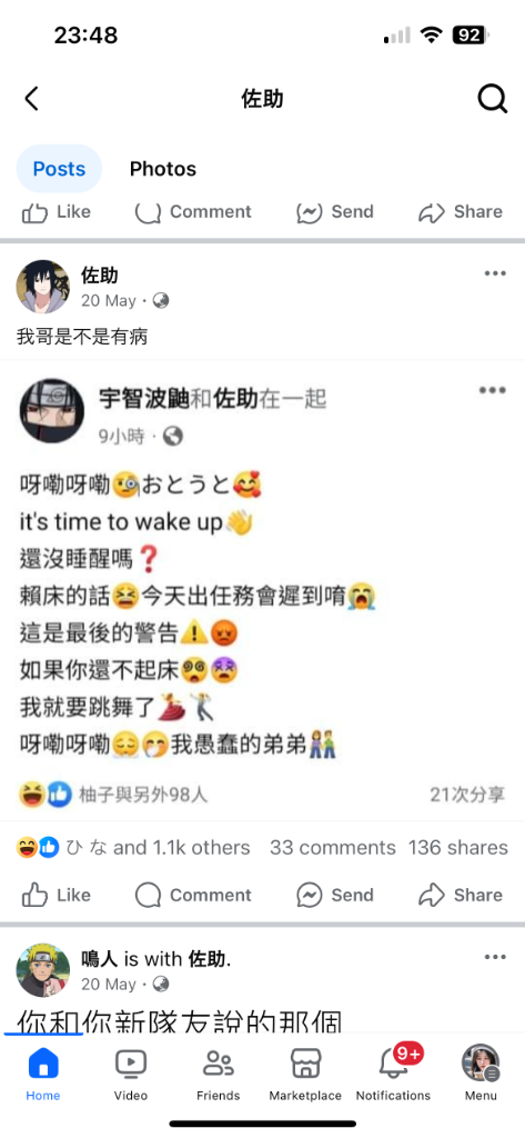 佐助說要摧毀木葉 但後來感覺在抱怨鳴人一直發朋友卡🥹